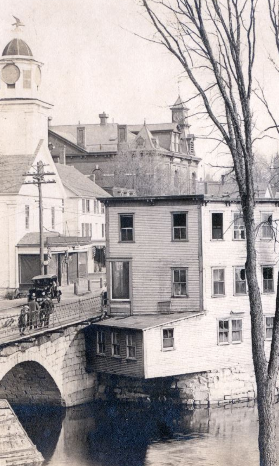 In 1909, an undertaking business was opened by John T. Smith in the old Savings Bank Building located south of the Stone Bridge.